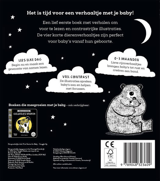 Een lief eerste boek met verhalen om voor te lezen en contrastrijke illustraties. De vier korte dierenverhaaltjes zijn perfect voor baby’s vanaf hun geboorte.