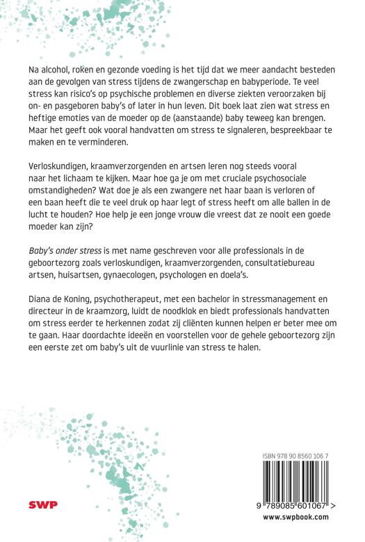 Na alcohol, roken en gezonde voeding is het tijd dat we meer aandacht besteden aan de gevolgen van stress tijdens de zwangerschap en babyperiode. Te veel stress kan risico’s op psychische problemen en diverse ziekten veroorzaken bij on- en pasgeboren baby’s of later in hun leven. Dit boek laat zien wat stress en heftige emoties van de moeder op de (aanstaande) baby teweeg kan brengen. Maar het geeft ook vooral handvatten om stress te signaleren, bespreekbaar te maken en te verminderen.