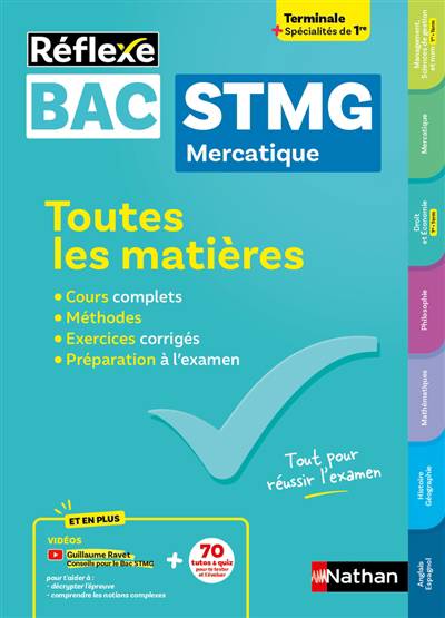 Conformes aux programmes, toutes les matières du Bac STMG (Management, Sciences de gestion et numérique, Mercatique, Droit et Economie, Philosophie, Mathématiques, Histoire-Géographie, Anglais-Espagnol) traitées dans un ouvrage clair et synthétique :