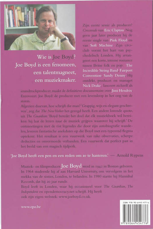 Eerste en belangrijke vraag: wie is Joe Boyd? Joe Boyd is een fenomeen, een talentmagneet, een muziekmaker. Zijn eerste sessie als producer? Crossroads van Eric Clapton. Nog geen jaar later producet hij de eerste single van Pink Floyd en van Soft Machine. Zijn UFO-club vormt het hart van psychedelisch Londen. Hij arrangeert een korte, intense romance tussen Britse folk en pop: The Incredible String Band, Fairport Convention, Sandy Denny. Hij ontdekt, producet en managet Nick Drake, lanceert zichzelf als soundtrackproducer, maakt de definitieve documentaire over Jimi Hendrix. Enzovoort. Joe Boyd: de producer met een levensloop in het oog van de storm.