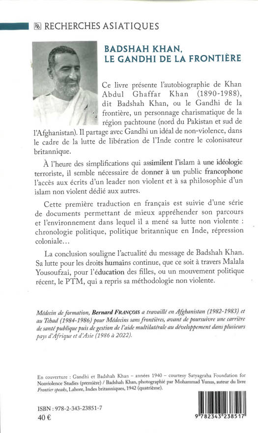 Ce livre présente l'autobiographie de Khan Abdul Ghaffar Khan (1890-1988), dit Badshah Khan, ou le Gandhi de la frontière, un personnage charismatique de la région pachtoune (nord du Pakistan et sud de l'Afghanistan). Il partage avec Gandhi un idéal de non-violence, dans le cadre de la lutte de libération de l'Inde contre le colonisateu rbritannique. À l'heure des simplifications qui assimilent l'islam à une idéologie terroriste, il semble nécessaire de donner à un public francophone l'accès aux écrits d'un leader non violent et à sa philosophie d'un islam non violent dédié aux autres.