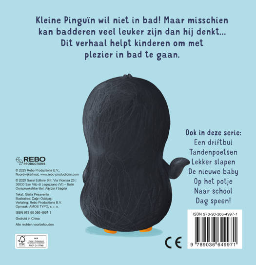 Kleine Pinguïn wil niet in bad! Maar misschien kan badderen veel leuker zijn dan hij denkt… Dit verhaal helpt kinderen om met plezier in bad te gaan.