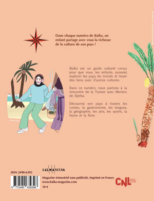 Asslema ! Dans ce numéro, le magazine Baïka emmène les enfants à la rencontre de la culture tunisienne, en compagnie de la jeune Meriem de Djerba. Avez-vous déjà entendu parler des djinns invisibles et de l’ogresse Teryel ? Connaissez-vous les meilleurs rappeurs tunisiens ? Avez-vous déjà admiré les plages de Djerba-la-douce ? Bonne lecture !