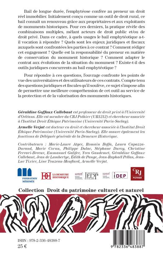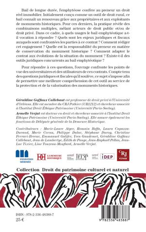 Bail de longue durée, l'emphytéose confère au preneur un droit réel immobilier. Initialement conçu comme un outil de droit rural, ce bail connaît un renouveau grâce aux propriétaires et aux exploitants de monuments historiques. Pour ces derniers, la pratique révèle des combinaisons multiples, mêlant acteurs de droit public et/ou de droit privé. Dans ce cadre, à quels usages le bail emphytéotique a-t-il vocation à répondre ? Quels sont les enjeux juridiques et fiscaux auxquels sont confrontées les parties à ce contrat ? Comment rédiger cet engagement ? Quelle est la responsabilité du preneur en matière de conservation du monument historique ? Comment adapter le contrat aux évolutions de la situation du monument ? Existe-t-il des outils juridiques concurrents au bail emphytéotique ? Pour répondre à ces questions, l'ouvrage confronte les points de vue des universitaires et des utilisateurs de ces contrats. Compte tenu des questions juridiques et fiscales qu'il soulève, ce sujet s'impose afin de permettre une meilleure compréhension de cet outil au service de la protection et de la valorisation des monuments historiques.