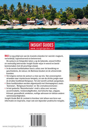 De auteurs en fotografen laten u op de bekende, onovertroffen en veelvuldig bekroonde Insight Guide-wijze in woord en beeld kennismaken met Bali en buureiland Lombok. In de eerste hoofdstukken leest u alles over de geschiedenis en cultuur, de bevolking, de Balinese keuken en de uitvoerende kunsten. Vervolgens nemen de auteurs u mee op reis. Van zonovergoten stranden naar mysterieuze tempels en door de dichte jungle op weg naar de drukke hoofdstad Denpasar. Tot slot wordt het prachtige eiland Lombok aangedaan. Deze hoofdstukken worden afgewisseld met thema- en wetenswaardpagina's over onder andere 'Gamelanmuziek', 'Religieuze feesten', 'De crematieceremonie' en 'Strandactiviteiten. De gedetailleerde kaarten en prachtige kleurenfoto's maken deze gids compleet.