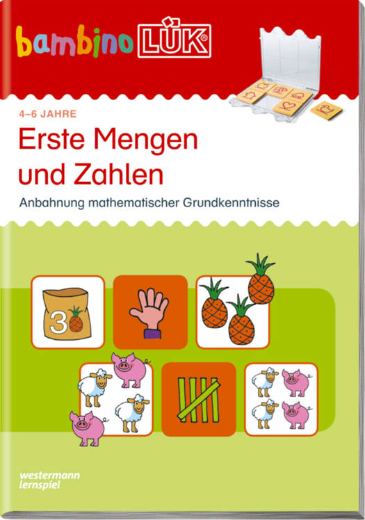 Das bambinoLÜK-Heft "Erste Mengen und Zahlen" ermöglicht Kindern ab 4 Jahren erste Mengen- und Größenbezeichnungen im Zahlenraum bis 6 zu entdecken. Die begleitenden Illustrationen sorgen dabei für eine optimale Veranschaulichung. So werden die Kinder bei der Entwicklung ihrer mathematischen Fähigkeiten unterstützt und nachhaltig gefördert.