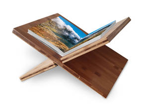 De nieuwe TERRA boekenstandaard is gemaakt van duurzaam bamboe en is volgens de Fairtrade-normen geproduceerd. Hij is eenvoudig in elkaar te zetten. De standaard bestaat uit twee planken. Pak in elke hand een plank en laat de inkepingen naar elkaar toe wijzen. Zet de ene plank haaks op de andere en schuif in elkaar. Laat de planken dan op elkaar rusten zodat er een kruis ontstaat en etaleer je nieuwste boek op de standaard.