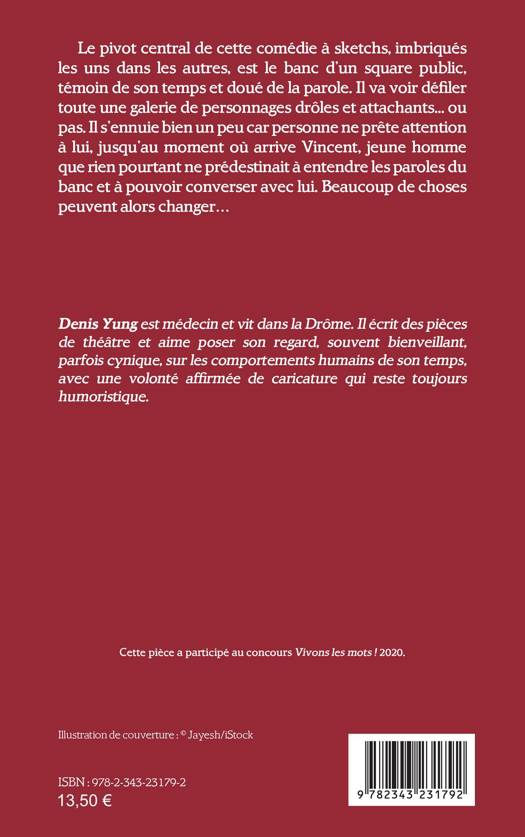 Le pivot central de cette comédie à sketchs, imbriqués les uns dans les autres, est le banc d'un square public, témoin de son temps et doué de la parole. Il va voir défi ler toute une galerie de personnages drôles et attachants... ou pas. Il s'ennuie bien un peu car personne ne prête attention à lui, jusqu'au moment où arrive Vincent, jeune homme que rien pourtant ne prédestinait à entendre les paroles du banc et à pouvoir converser avec lui. Beaucoup de choses peuvent alors changer...