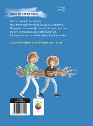 Marte is bang in het donker. Haar tweelingbroer Hidde plaagt haar daarmee. Dan gaan ze een weekje naar een huisje in een bos. Er gebeurt iets en de lampen in het park gaan uit. Er is maar een oplossing. Marte moet in haar eentje door het donker…