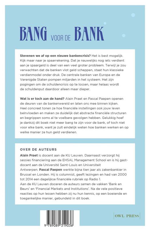 Wat is er toch aan de hand? Alain Praet en Pascal Paepen openen de deuren van de bankenwereld en laten ons mee binnen kijken. Heel concreet tonen ze hoe financiële instellingen ook jouw leven beïnvloeden en maken ze duidelijk dat abstracte financiële structuren en begrippen soms al te voelbare gevolgen hebben. Gelukkig hoef je dankzij dit boek niet meer bang te zijn voor de bank, of toch niet voor elke bank, want je zult eindelijk weten hoe banken werken en op welke manier ze hun geld verdienen.