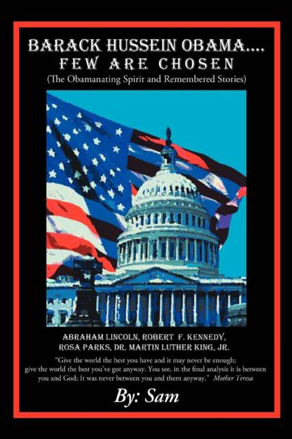 "Barack Hussein Obama.........Few Are Chosen....The Obamanating Spirit and Remembered Stories" is an inspired book written about Barack Hussein Obama, President of the United States of America. The book consists of several topics that I hope the reader will find enlightening. It is a look backwards, in that I tell the audience about the segregated South and a look forward, the place where we must strive to be. Nevertheless, I hope that each individual will enjoy reading my book, which incorporates biography, humor, historical facts, scripture, and religious beliefs. It is not an attack on anyone or any group. It is intended to be an eye-opener in that it deals with several topics that relate to the President including birth, patriotism and religion. Each chapter discusses what I believe is an American peoples concern. Some people might see my book as a book on race relations and to some degree it is, but gently. There are thirteen chapters. In Chapter Five I discuss the forty year prophesy of the coming of Barack Obama; while in Chapter Seven I discuss the struggles of African Americans "then and now," the African American churches, including Rev. Wright, Rev. Dr. Martin Luther King (among other things); Chapter Nine, "Forcing Scared Against The President" discusses how the politicians work overtime to portray President Obama illegitimately to the American Public, and Chapter Ten, disputes the assertion that Barack Obama is a radical (Really?); Chapter Eleven, "Will the Real Mr. Speaker Stand," questions the heart of John Boehner and Chapter Twelve, "Guess Who's Coming To The Tea Party" warns the Tea Party that they could very easily become the terror group of the past. Chapter One, "I Saw An Angel" is the foundation for the book and how it all got started.