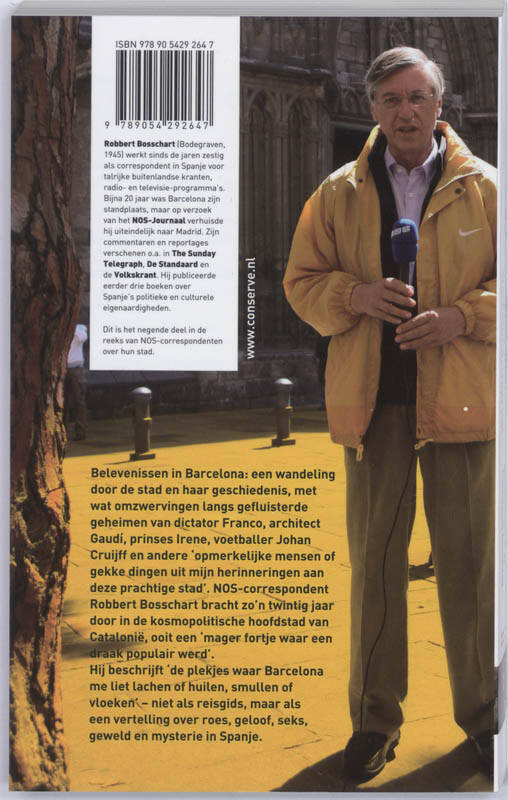 Belevenissen in Barcelona: een wandeling door de stad en haar geschiedenis, met wat omzwervingen langs gefluisterde geheimen van dictator Franco, architect Gaudi (accent op de i naar rechts), prinses Irene, voetballer Johan Cruijff en andere ‘opmerkelijke mensen of gekke dingen uit mijn herinneringen aan deze prachtige stad’. NOS-correspondent Robbert Bosschart bracht zo’n twintig jaar door in de kosmopolitische hoofdstad van Catalonie (trema op de e), ooit een ‘mager fortje waar een draak populair werd’. Hij beschrijft ‘de plekjes waar Barcelona me liet lachen of huilen, smullen of vloeken’ – niet als reisgids, maar als een vertelling over roes, geloof, seks, geweld en mysterie in Spanje.