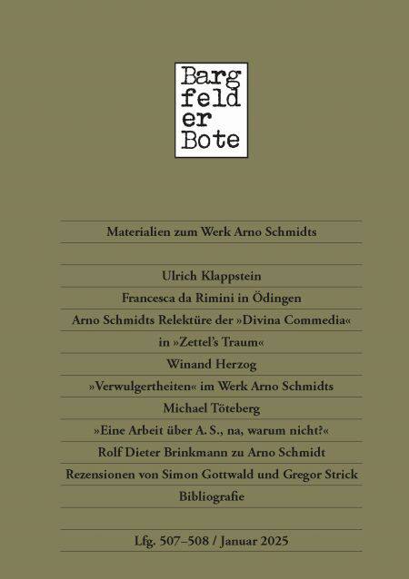 Die deutsche Gegenwartsliteratur erledigte Rolf Dieter Brinkmann bekanntlich im Rundumschlag: "Andersch … lasch, und Walser, Enzensberger, Grass, Hildesheimer, Wellershoff, Richter gar nicht zu ertragen wie gar nicht der dumme humane Böll zu ertragen ist – sowas Abgestandenes ringsum, sowas Trübes". Arno Schmidt dagegen zählte Brinkmann stets zu den "großen Einzelnen (…), die ich las, kannte, liebte, die mich stärkten". Schon als Jugendlicher entdeckte er den Autor für sich. Seinem Freund Ralf-Rainer Rygulla – man hatte gemeinsam die Buchhändlerlehre gemacht – berichtete er am 22. August 1964 von seiner neuesten Lektüre. "Köstlich amüsiere ich mich bei Arno Schmidts neuem Erzählungsband 'Kühe in Halbtrauer', wenn das kein giftiger Kobold ist, ein Fliegenpilz in 'unsrem, Gottes eigenem Land'."