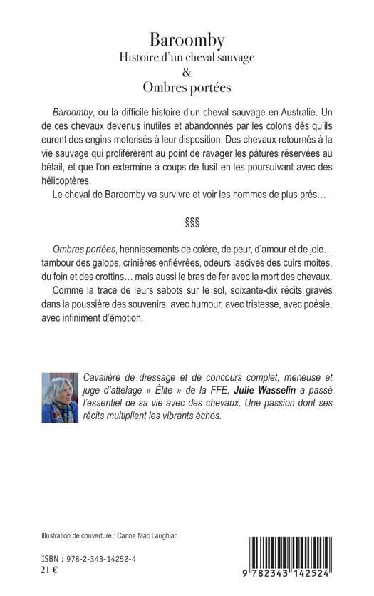 Baroomby, ou la difficile histoire d'un cheval sauvage en Australie. Un de ces chevaux devenus inutiles et abandonnés par les colons dès qu'ils eurent des engins motorisés à leur disposition. Le cheval de Baroomby va survivre et voir les hommes de plus près...Ombres portées, hennissements de colère, de peur, d'amour et de joie ... Comme la trace de leurs sabots sur le sol, soixante-dix récits gravés dans la poussière des souvenirs, avec humour, tristesse, poésie, avec infiniment d'émotion.