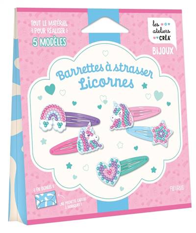 Tout pour réaliser 5 barrettes étincelantes sur la thématique des licornes !
