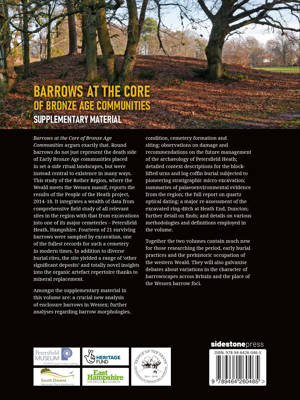 Amongst the supplementary material in this volume are: a crucial new analysis of enclosure barrows in Wessex; further analyses regarding barrow morphologies, condition, cemetery formation, and siting; observations on damage and recommendations on the future management of the archaeology of Petersfield Heath; detailed context descriptions for the block-lifted urns and log-coffin burial subjected to pioneering stratigraphic micro-excavation; summaries of palaeoenvironmental evidence from the region; the full report on quartz optical dating; a major re-assessment of the excavated ring-ditch at Heath End, Duncton; further detail on finds; and details on various methodologies and definitions employed in the volume.