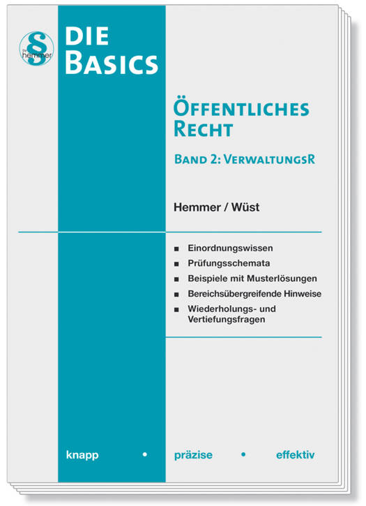 Im Skript Basics Öffentliches Recht Band 2 werden Grundfragen des Verwaltungsrechts verständlich und einprägend dargestellt. Erlernen Sie so die wichtigsten Inhalte zum Verwaltungsrecht in knapper und treffender Sprache. Zusammen mit dem Skript Basics Öffentliches Recht Band 1 - Verfassungsrecht/Staatshaftungsrecht - können Sie sich in der öffentlich-rechtlichen Klausur sicher fühlen. Das Grundwerk für Studium und Examen. Es schafft schnell Einordnungswissen und mittels der hemmer-Methode richtiges Problembewusstsein für Klausur und Hausarbeit. Wichtig ist, wann und wie Wissen in der Klausur angewendet wird. Die Basics - umfangreicher als die Grundwissenreihe und knapper als die Hauptskriptenreihe.Inhalt: Klagearten der VwGO und ihre gemeinsamen ZulässigkeitsvoraussetzungenEröffnung des Verwaltungsrechtsweges, 40 VwGO Anfechtungsklage samt 48, 49 VwVfG etc.Verpflichtungsklage Widerspruchsverfahren, 68 ff. VwGO Allgemeine LeistungsklageAllgemeine Feststellungsklage, 43 VwGOFortsetzungsfeststellungsklage, 113 I S. 4 VwGONormenkontrollklage, 47 VwGOEinstweiliger Rechtsschutz