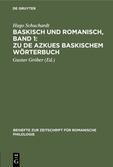4. Baskisch Und Romanisch, Band 1: Zu de Azkues Baskischem Wörterbuch