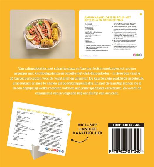 De kaarten zijn praktisch in gebruik, afneembaar én mee te nemen als boodschappenlijstje. En met behulp van de handige iconen zie je in een oogopslag welke recepten voldoen aan jouw specifieke eetwensen. Met de receptkaarten van Becht wordt barbecueën een fluitje van een cent.