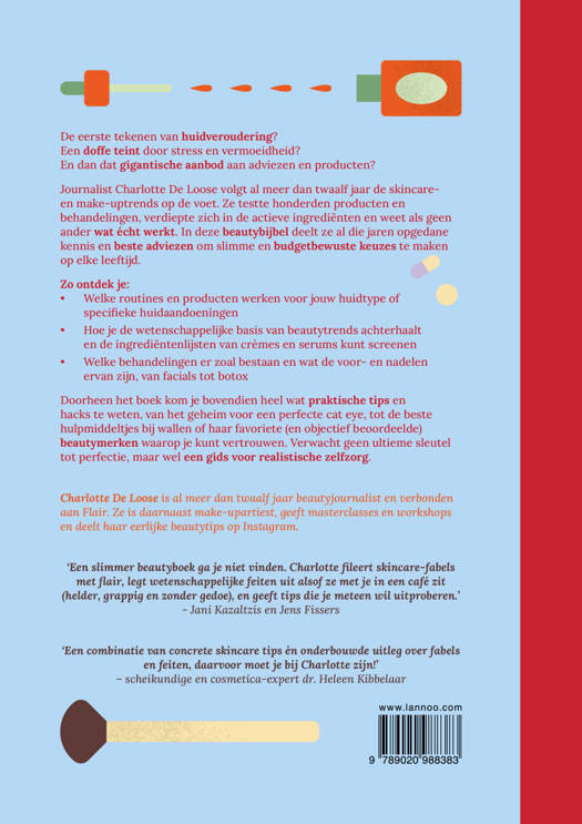 Journalist Charlotte De Loose volgt al meer dan twaalf jaar de skincare- en make-uptrends op de voet. Ze testte honderden producten en behandelingen, verdiepte zich in de actieve ingrediënten en weet als geen ander wat écht werkt. In deze beautybijbel deelt ze al die jaren opgedane kennis en beste adviezen om slimme en budgetbewuste keuzes te maken op elke leeftijd.