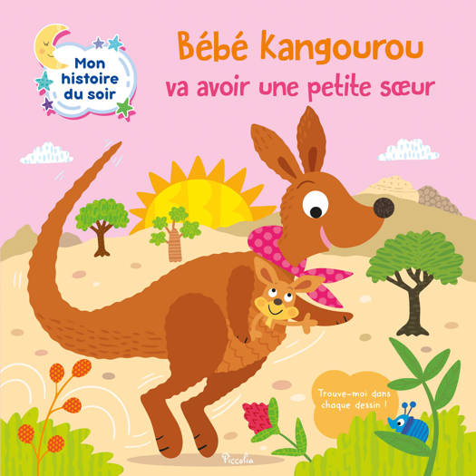 Bébé Kangourou est content d’avoir bientôt une petite sœur, mais il ne veut pas partager la poche de sa maman ! Une collection de petits albums joyeusement illustrés que votre enfant vous réclamera tous les soirs ! Il aura beaucoup de plaisir à suivre les aventures de ces bébés animaux dans la vie de tous les jours. Avec un petit élément à trouver dans chaque page !