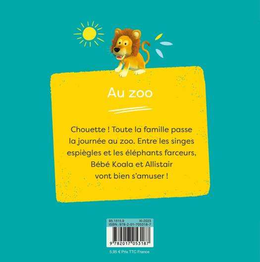 Chouette ! Toute la famille passe la journée au zoo. Entre les singes espiègles et les éléphants farceurs, Bébé Koala et Allistair vont bien s'amuser ! Retrouvez une nouvelle aventure de notre petit Koala préféré dans un nouveau format plus grand et cartonné !