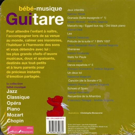 12 morceaux de guitare : classique, jazz, berceuses, etc., pour les tout-petits et leurs parents.