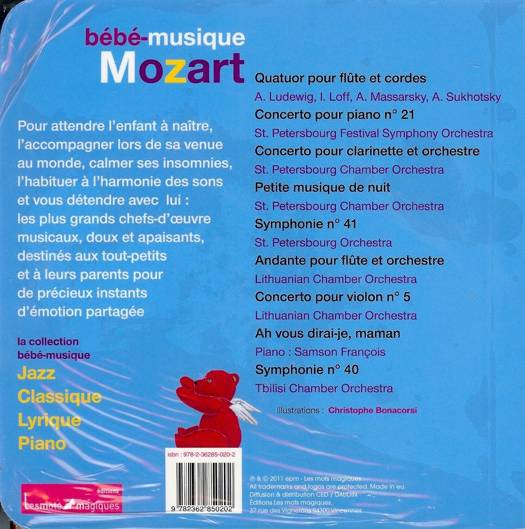 Pour attendre l'enfant à naitre, l'accompagner lors de sa venue au monde, calmer ses insomnies, l'habituer à l'harmonie des sons et vous détendre avec lui : les plus grands chefs-d'oeuvre musicaux, doux et apaisants, destinés aux tout-petits et à leur parents pour de précieux instants d'émotion partagée.