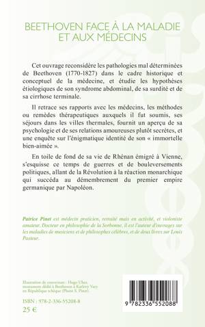 Cet ouvrage reconsidère les pathologies mal déterminées de Beethoven (1770-1827) dans le cadre historique et conceptuel de la médecine, et étudie les hypothèses étiologiques de son syndrome abdominal, de sa surdité et de sa cirrhose terminale.
