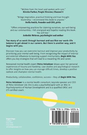Petra Velzeboer draws upon her personal experiences of trauma and hardship to offer insights on how you can overcome difficult periods and develop a positive outlook. Packed with case studies and psychological research, Begin With You is the essential guide to becoming a mental health champion and transforming your career and life for the better.