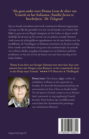 Op een koude novemberavond wordt commissario Brunetti opgeroepen bij een lijk dat gevonden is in een van de kanalen van Venetië. Het blijkt te gaan om een illegale immigrant uit Sri Lanka, en algauw wordt duidelijk dat de man op het terrein van een palazzo woonde. Brunetti vindt tussen de achtergebleven eigendommen van de man boeken over het boeddhisme, de Tamiltijgers en Italiaanse terroristen uit de jaren tachtig.