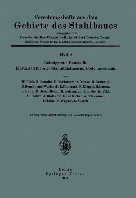 W Blick, E Chwalla, F Dischinger, O Domke, R Grammel, H Hencky, W Moheit, R Hoffmann, K Klöppel, H Lorenz, L Mann, R Gran Olsson, H Petermann, J Pirlet, K Pohl