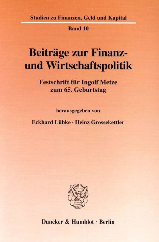 Mit diesem Festband möchten die Autoren die Arbeit von Professor Metze auf dem Gebiet der Volkswirtschaftslehre würdigen. Die im Band behandelten Themen geben in ihrer Vielfalt einen Überblick über das Spektrum volkswirtschaftlicher Fragestellungen, die zum Interessen- und Forschungsbereich des Jubilars gehören. Es wäre schön, wenn dieser Festband Professor Metze zu neuen Ideen inspiriert.