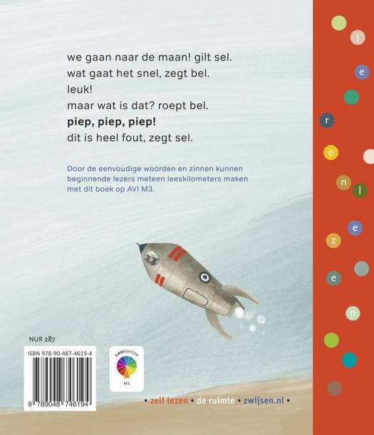 we gaan naar de maan! gilt sel. wat gaat het snel, zegt bel. leuk! maar wat is dat? roept bel. piep, piep, piep! dit is heel fout, zegt sel.
