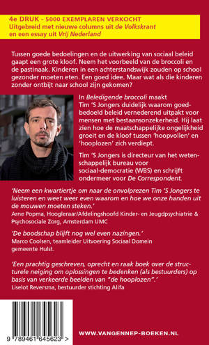 In Beledigende broccoli vraagt Tim ’S Jongers hoe deze kloof overbrugd kan worden. De wereld van het beleid is gesloten voor de ervaringen van kwetsbare mensen. Hoe kan ervaringskennis een rol gaan spelen? Op deze vraag geeft Tim ’S Jongers persoonlijke en ongemakkelijke antwoorden, waarbij het verkrijgen van articulatiemacht een belangrijke rol speelt.