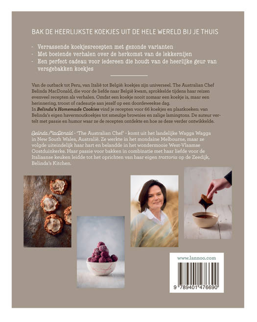 Van de outback tot Peru, van Italië tot België: koekjes zijn universeel. The Australian Chef Belinda MacDonald, die voor de liefde naar België kwam, sprokkelde tijdens haar reizen evenveel recepten als verhalen. Omdat een koekje nooit zomaar een koekje is, maar een herinnering, troost of cadeautje aan jezelf op een doordeweekse dag.