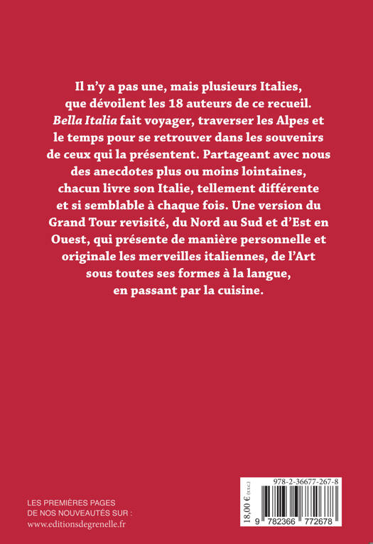 Des pérégrinations humanistes de Montaigne aux promenades romaines de Dominique Fernandez, des déambulations florentines de Dumas-père aux flâneries de Patrick Modiano dans les rues romaines, rare sont ceux ne sentant pas l'appel de la Botte. Cet ouvrage nous fait parcourir la Péninsule du Nord au Sud, îles comprises, et aborde de nombreux sujets ; les arts bien sûr avec la littérature, le cinéma, le théâtre, l'architecture ou la musique, mais aussi la langue ou la cuisine. Un recueil de récits littéraires, où chacun des auteurs, lié à l'Italie de façon très personnelle, intime, partage avec les lecteurs ses souvenirs, souvent nostalgiques. On y évoque la famille, le couple, l'amour toujours, beaucoup plus que l'intellect. Chaque texte est une preuve de « l'envoûtement unanime » que le pays exerce sur ceux qui ont eu la chance de s'y rendre.