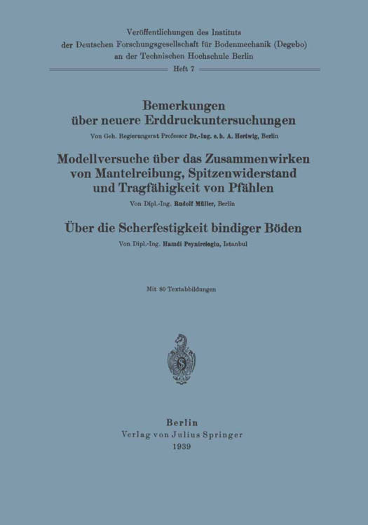 Bemerkungen Über Neuere Erddruckuntersuchungen. Modellversuche Über Zusammenwirken Von Mantelreibung, Spitzenwiderstand Und Tragfähigkeit Von Pfählen. Über Die Scherfestigkeit Bindiger Böden