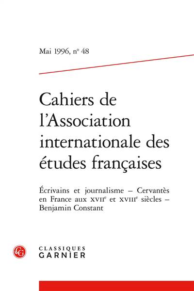 Un premier dossier rend compte des rapports entre le journalisme et la littérature française, de R. Challe à A. Camus, en passant par Madame de Genlis, E. Zola, M. Barrès ou encore B. Cendrars. Le deuxième traite de l'influence exercée par Don Quichotte sur les écrivains français, de G. Guérin de Bouscal à Florian. Le dernier explore la vie, l'oeuvre et la pensée de B. Constant.