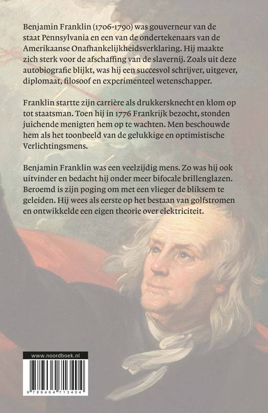 Benjamin Franklin (1706-1790) was gouverneur van de staat Pennsylvania en een van de ondertekenaars van de Amerikaanse Onafhankelijkheidsverklaring. Hij maakte zich sterk voor de afschaffing van de slavernij. Zoals uit deze autobiografie blijkt, was hij een succesvol schrijver, uitgever, diplomaat, filosoof en experimenteel wetenschapper.