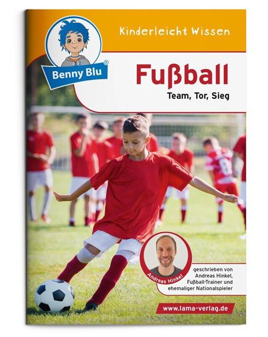 Anstoß, Schuss und Tor. Benny Blu geht mit dir auf den Fußballplatz. Seit wann spielt man Fußball? Welche Regeln gibt es? Was bedeutet "Abseits"? Und was hat eine Schwalbe mit Fußball zu tun? Benny Blu Lernbuch, Format DIN A6, 32 Seiten, geheftet, 4/4 farbig