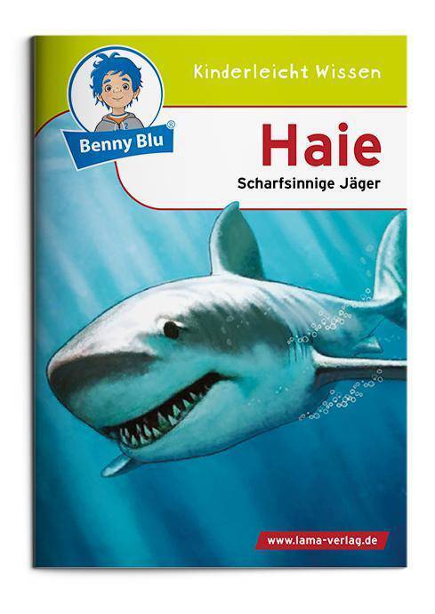 Packende Raubfische. Benny Blu taucht mit dir tief hinab ins Meer zu den Haien. Seit wann gibt es sie? Wo leben sie? Wie viele Arten hat man bereits entdeckt? Und was ist ein Revolvergebiss? Benny Blu Lernbuch, Format DIN A6, 32 Seiten, geheftet, 4/4 farbig