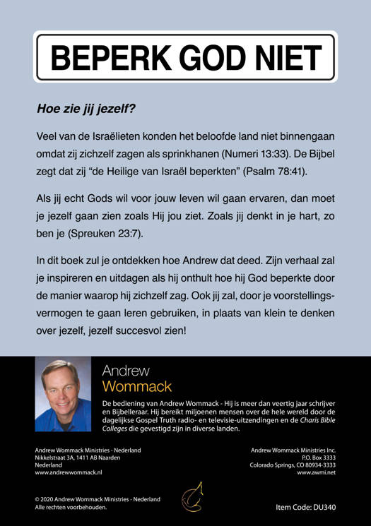 De Bijbel zegt dat zij "de Heilige van Israël beperkten" (Psalm 78:41). Als jij echt Gods wil voor jouw leven wil gaan ervaren, dan moet je jezelf gaan zien zoals Hij jou ziet. Zoals jij denkt in je hart, zo ben je (Spreuken 23:7).