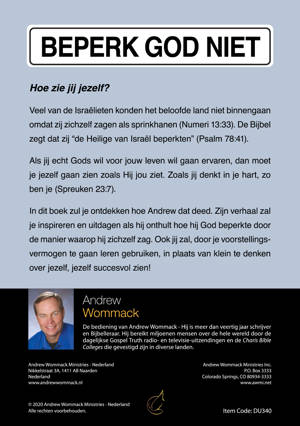 In dit boek zul je ontdekken hoe Andrew dat deed. Zijn verhaal zal je inspireren en uitdagen als hij onthult hoe hij God beperkte door de manier waarop hij zichzelf zag. Ook jij zal, door je voorstellingsvermogen te gaan leren gebruiken, in plaats van klein te denken over jezelf, jezelf succesvol zien!