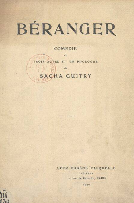 Comédie en trois actes et un prologue représentée pour la première fois sur la scène du Théâtre de la Porte Saint-Martin, le 21 janvier 1920