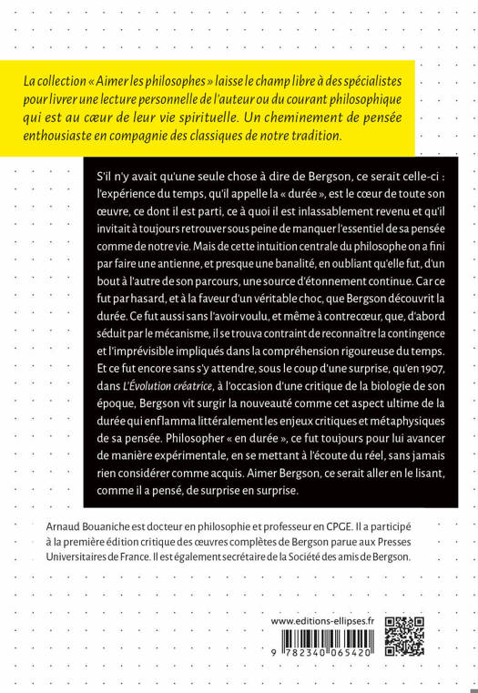 Arnaud Bouaniche est docteur en philosophie et professeur en CPGE. Il a participé à la première édition critique des œuvres complètes de Bergson parue aux Presses Universitaires de France. Il est également secrétaire de la Société des amis de Bergson.