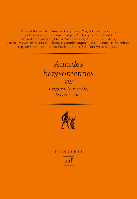 Ce huitième volume des Annales bergsoniennes poursuit, comme les trois précédents, l’investigation entamée dans le sillage du dernier livre de Bergson, Les deux sources de la morale et de la religion, en direction de notre propre présent, vers les problématiques de philosophie pratique : après les questions de la politique, de la catastrophe et de la guerre, c’est à présent celle de la morale, organisée autour de celle de l’émotion et divisée comme elle (selon le partage décidément crucial du clos et de l’ouvert), qui est posée. Le dossier « Bergson, philosophe de l’émotion » aborde donc des problèmes esthétiques, religieux et sociaux. Il est lui-même entouré d’un article de varia et de deux inédits : l’un, dû à Bergson lui-même, est consacré à des questions de philosophie de la croyance ; l’autre, consistant dans deux lettres adressées à Bergson par le philosophe Delfim Santos, nous fait découvrir les prémices, peu après la parution des Deux sources, de la réception encore mal connue en France de Bergson au Portugal.