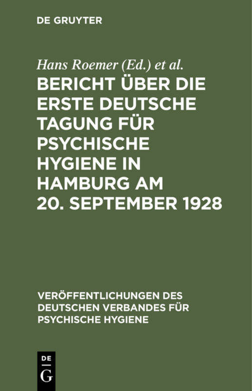 Bericht Über Die Erste Deutsche Tagung Für Psychische Hygiene in Hamburg Am 20. September 1928