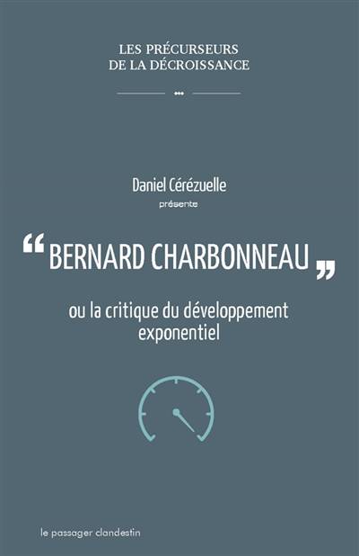 Bernard Charbonneau (1910-1996), pionnier de l'écologie politique, est aussi sans conteste l'un des critiques les plus précoces du dogme de « la croissance technique et économique indéfinie ». Son oeuvre, écrite pour l'essentiel dans les années 1940 et ignorée jusque dans les années 1970, est d'une densité et d'une fulgurance qui n'ont guère à envier à celle de son ami Jacques Ellul.