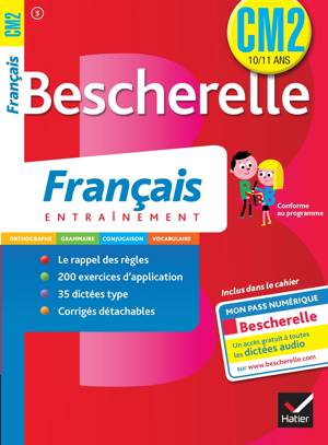 Tout le programme de l'année en 40 leçons et plus de 200 exercices. Pour chaque leçon : le rappel de la règle ; des exercices d'application ; tous les corrigés sur un livret détachable En exclusivité avec ce cahier, ton pass numérique Bescherelle, pour accéder aux dictées audio et travailler en autonomie www.bescherelle.com.